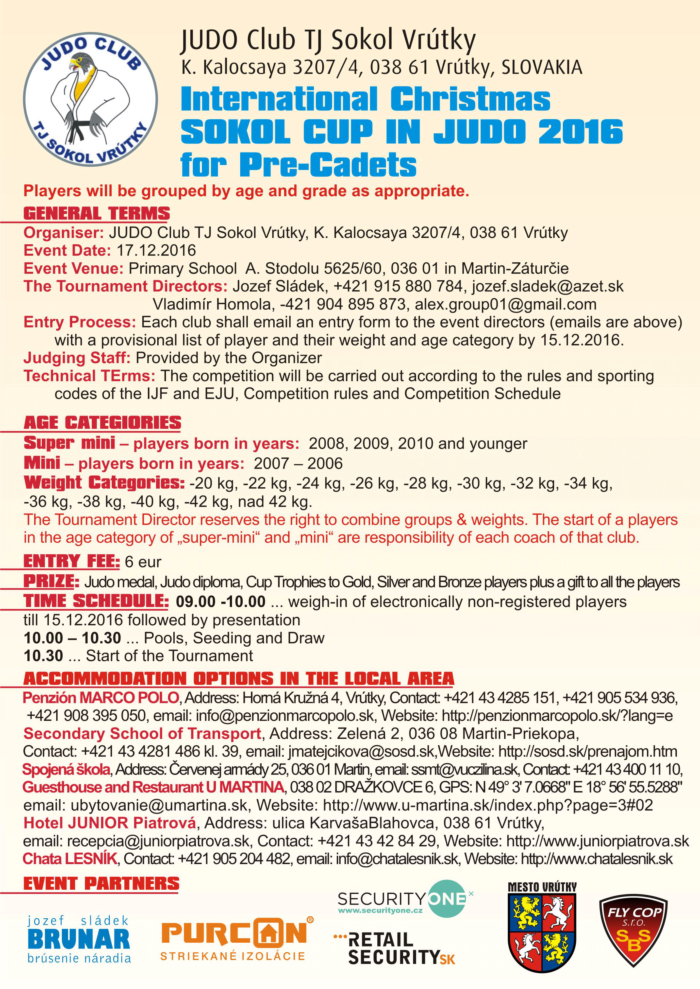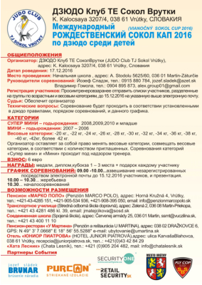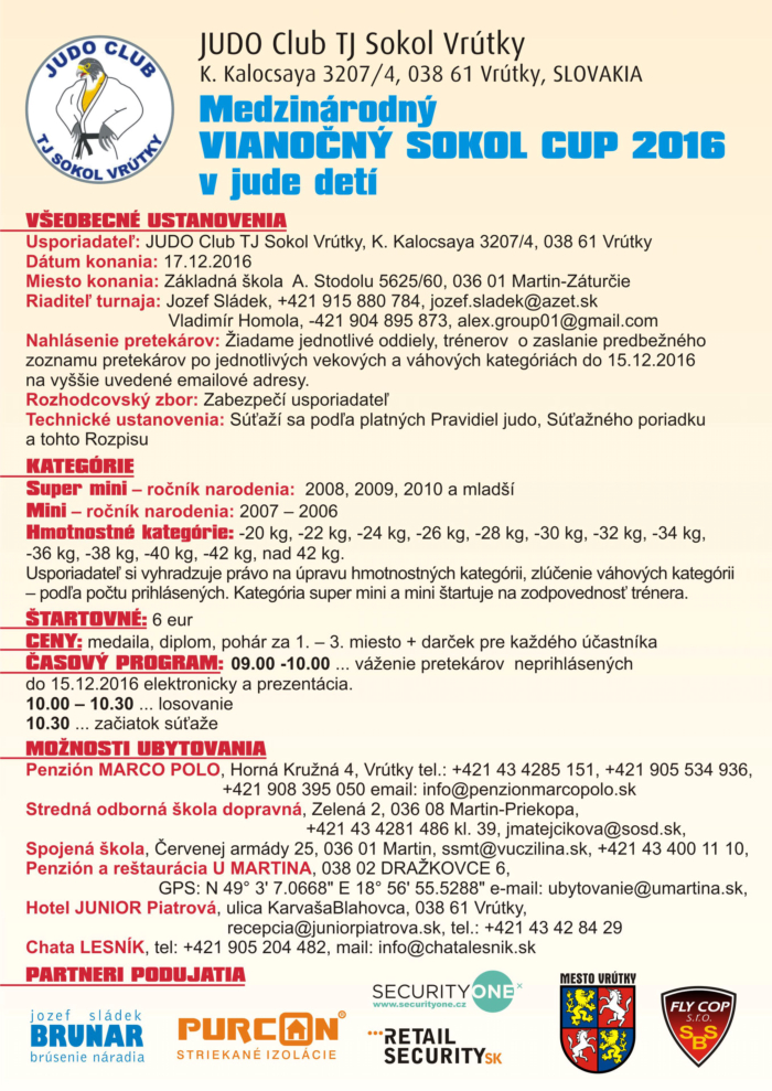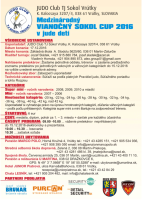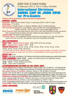Pozvánka na Judo Cup 2016 Medzinárodný Sokol Judo Cup 17.12.2016 Vitajte na stránkach Judo Club - TJ SOKOL VRÚTKY KONTAKT KALENDÁR O KLUBE O JUDE DOMOV GALÉRIA ÚSPECHY VÝSLEDKY PARTNERI
